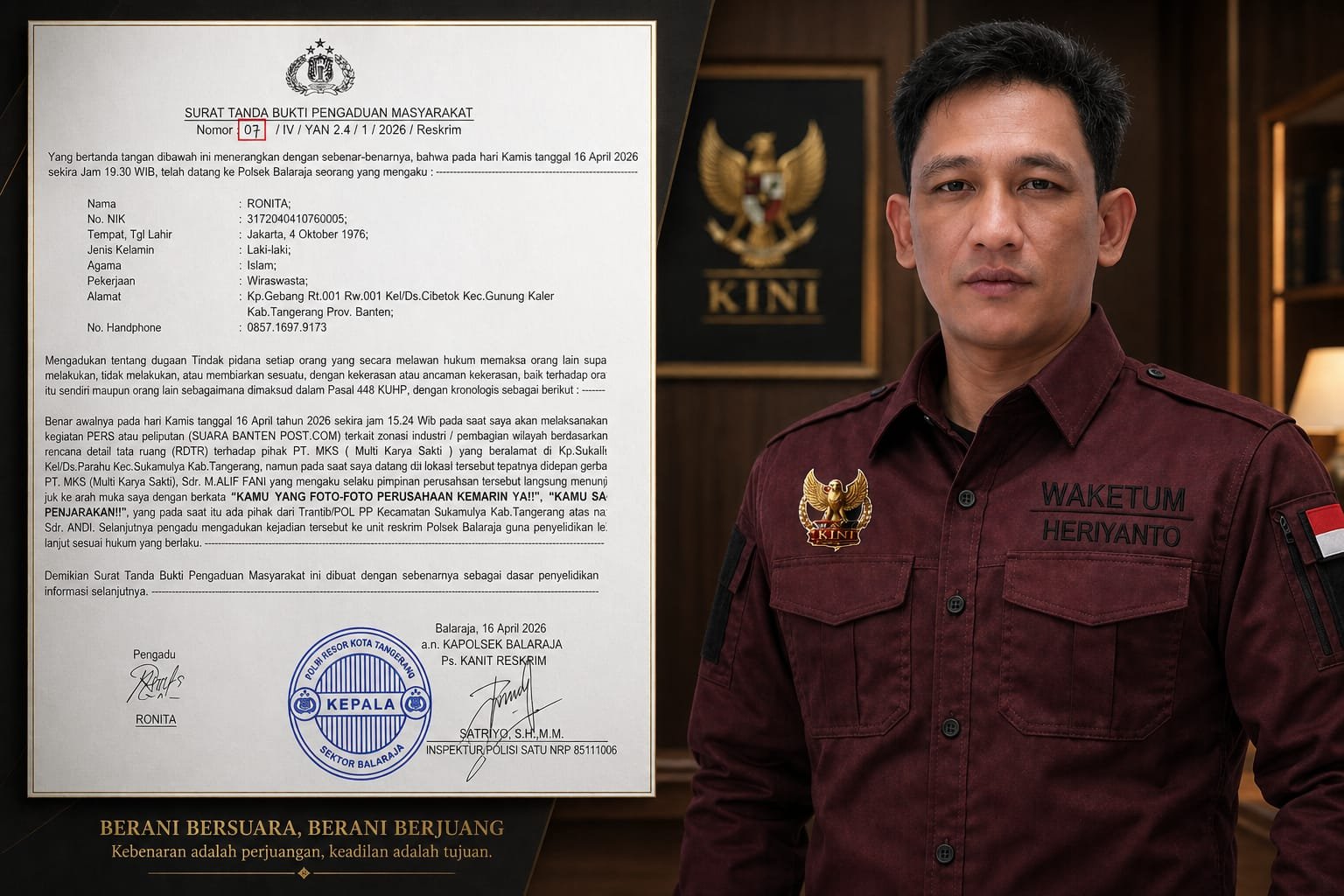 TANGERANG, SIBER77.COM – Seorang wartawan media SuaraBantenPost.com, Ronita, melaporkan dugaan tindakan intimidasi yang dialaminya saat menjalankan tugas jurnalistik kemudian korban lapor ke Polsek Balaraja, Kabupaten Tangerang.(28/04/26).