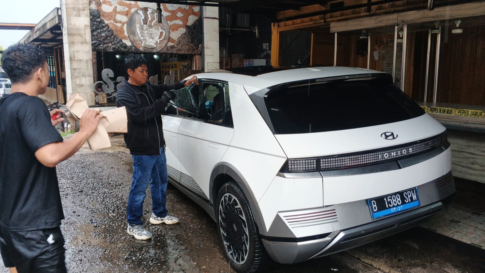 Tak lama kemudian, petugas parkir memberi tahu bahwa kaca mobil korban telah pecah. Saat dicek, barang berharga berupa satu unit iPhone telah hilang.