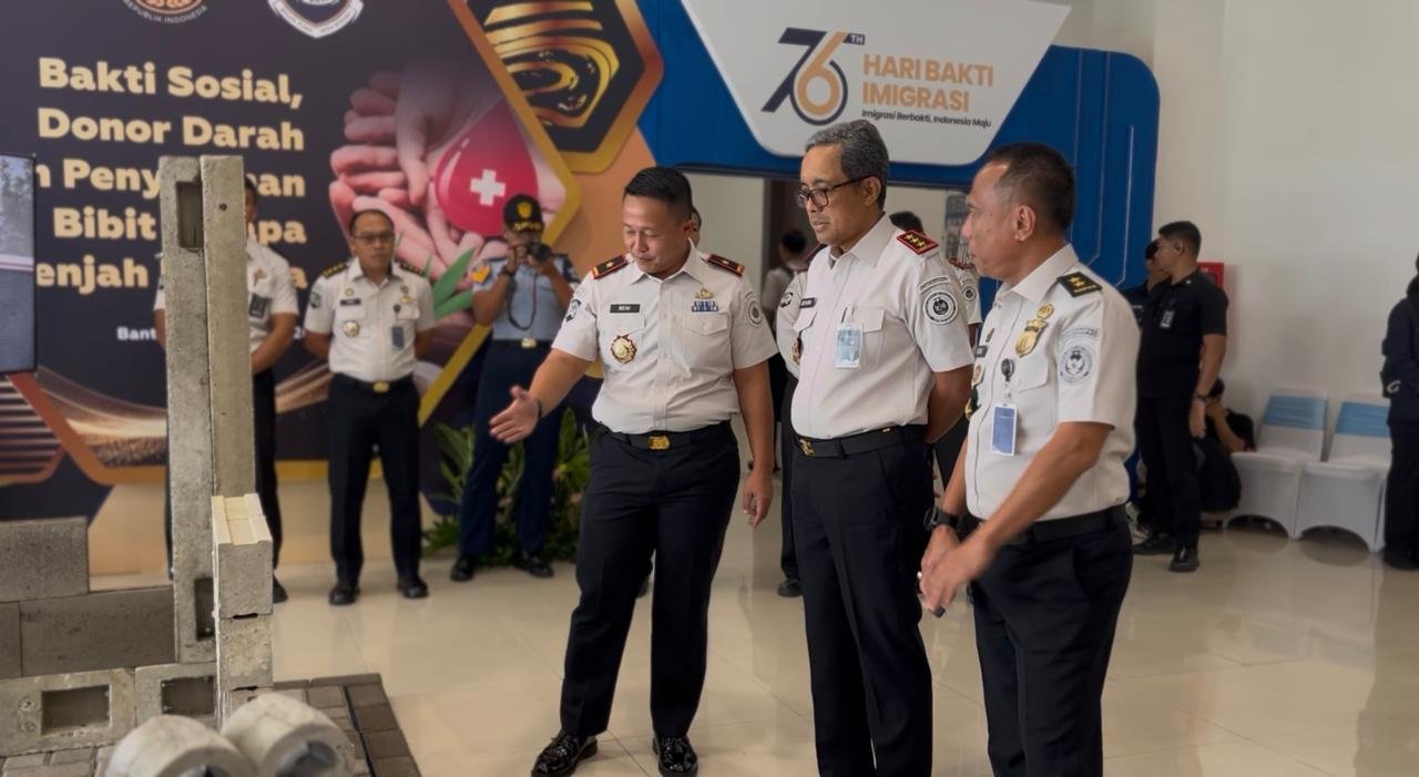 Kota Tangerang – Lembaga Pemasyarakatan (Lapas) Kelas I Tangerang turut ambil bagian dalam rangkaian kegiatan Peringatan Hari Bhakti Imigrasi (HBI) ke-76 yang digelar di Kampus Politeknik Pengayoman Indonesia (Poltekpin) Tangerang dengan menghadirkan Jawara Beton sebagai program pembinaan kemandirian unggulan di bidang keterampilan kerja, Selasa (20/1). Partisipasi tersebut ditandai dengan pembukaan stan khusus Jawara Beton yang menampilkan berbagai produk konstruksi hasil karya Warga Binaan, sekaligus dihadiri langsung oleh Kepala Lapas Kelas I Tangerang bersama jajaran struktural sebagai wujud dukungan terhadap pelaksanaan pembinaan kemandirian.