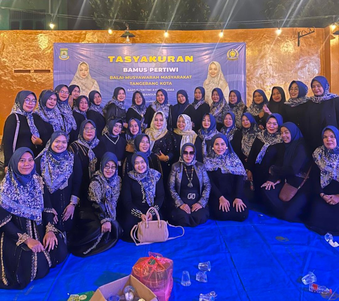TANGERANG, — Suasana kebersamaan dan kekeluargaan terasa hangat di kediaman ibu Ketua Umum PERTIWI BAMUS Tangkot di Buaran Indah, Kecamatan Tangerang, Kota Tangerang, saat digelar acara Tasyakuran PERTIWI BAMUS Tangkot atas terpilihnya Hj. Usnawati sebagai Ketua Umum dan Suci Rahayu, S.Pd sebagai Wakil Ketua.
